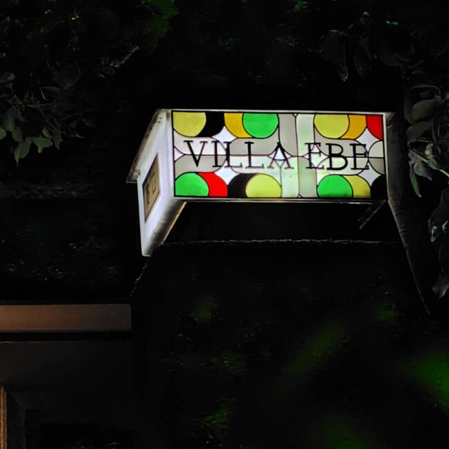 門柱の街灯部分に設置して完成!色鮮やかに夜道も照らしてくれます。